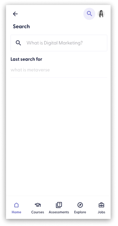 Data showed that users' search queries were not matching our expectations. Users needed help to know what can they search for - that is why we implemented some hints e.g. "What is Digital Marketing", "What is Metaverse" etc. which would show a different suggestion every 30 seconds.