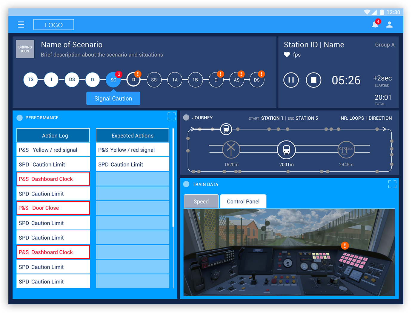 The goal is to show an overview of what has happened, a in real-time trainees’ VR experience and future scenarios/situations.